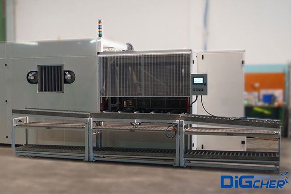 PT-6 SSDA 大軸承通過式清洗線采用動力輥子輸送上料,網(wǎng)帶帶動工件一次進入噴淋清洗工位、噴淋漂洗工位、烘干工位及霧化上油工位。采用知名品牌PLC實現(xiàn)清洗過程全自動準(zhǔn)確控制,可變頻調(diào)速。