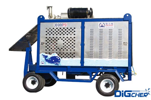 德高潔 DJ 2000/20DT 2000公斤壓力進(jìn)口柴油超高壓清洗機(jī)采用康明斯95kw柴油發(fā)動(dòng)機(jī)作為動(dòng)力源,高壓泵為美國(guó)原裝三柱塞泵,設(shè)計(jì)有三級(jí)進(jìn)水過(guò)濾器,并采用特種不銹鋼泵頭、不銹鋼閥門及柱塞、高技術(shù)密封填料;曲軸箱采用飛濺潤(rùn)滑;設(shè)計(jì)有變頻調(diào)速系統(tǒng);配備氣動(dòng)旋轉(zhuǎn)槍;安全閥采用爆破膜式,安全可靠。