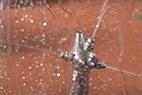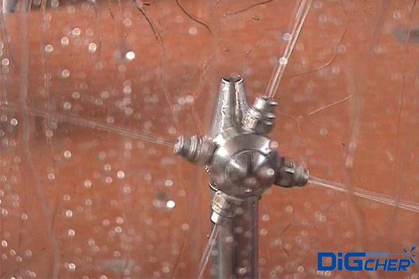 德高潔高壓水發(fā)酵罐自動(dòng)清洗系統(tǒng)是利用高壓水射流的動(dòng)能將發(fā)酵罐內(nèi)壁表面上的堅(jiān)硬垢物擊碎,從而剝離并清除掉。具體清洗流程是將特制的三維洗罐器伸縮機(jī)構(gòu)安裝在發(fā)酵罐入口上,伸縮桿伸進(jìn)罐內(nèi),伸縮桿在罐內(nèi)伸縮和沿內(nèi)壁周?chē)较蛞苿?dòng)。當(dāng)三維洗罐器水平旋轉(zhuǎn)時(shí),水射流形成的旋轉(zhuǎn)力矩帶動(dòng)噴嘴在垂直面內(nèi)旋轉(zhuǎn)。由于三維旋轉(zhuǎn)噴頭與伸縮桿的復(fù)合運(yùn)動(dòng),高壓水射流可以覆蓋發(fā)酵罐內(nèi)任何位置,從而完成清洗。